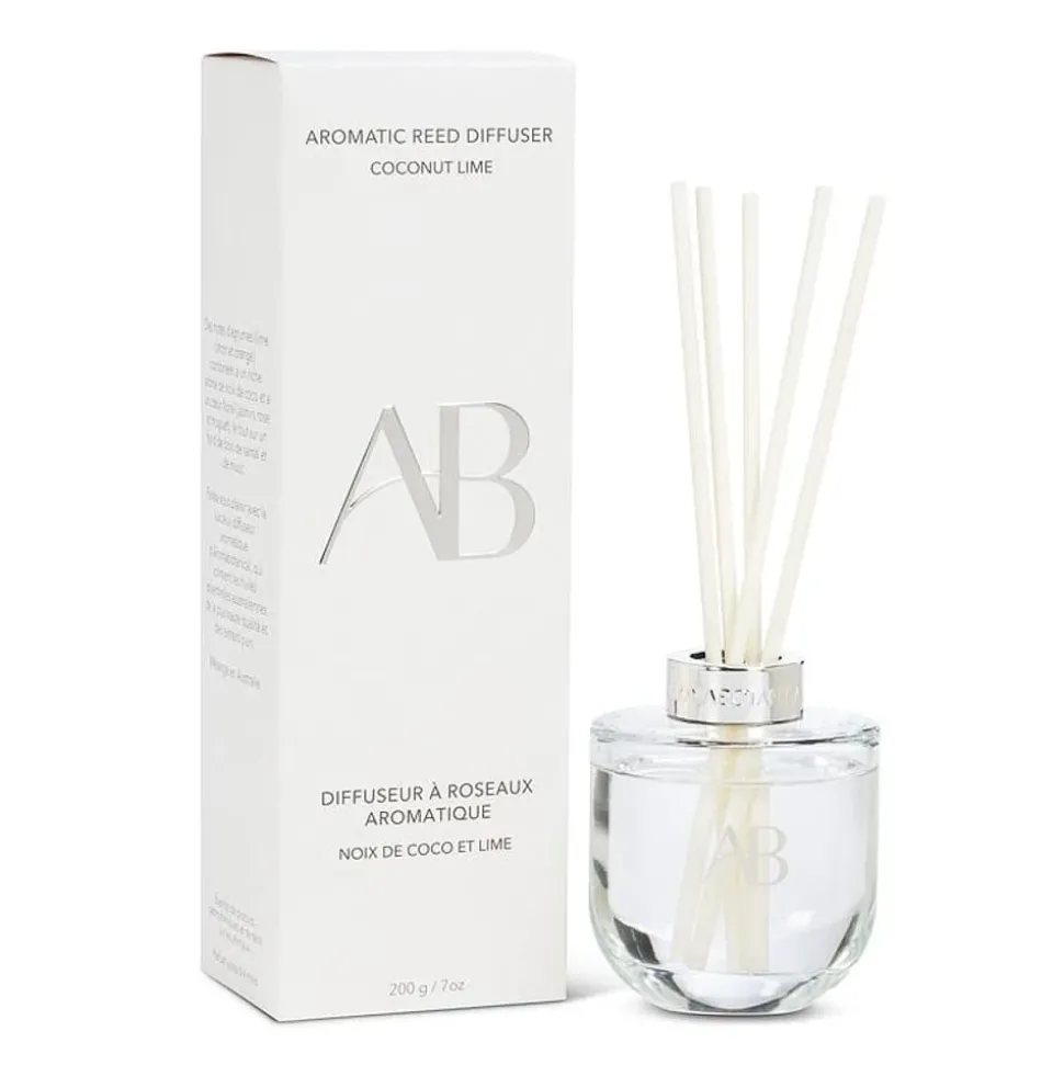 Aromabotanical product. Capacity: 7 oz/ 200g. This aromatherapy stem diffuser comes in a glass container. Its fragrance oil is a fresh blend of lime, coconut, lemon and orange with floral notes of rose, jasmine and lily of the valley. All on an aromatic base of sandalwood and musk. Made with natural Australian essential oils. Simply place the reeds inside for a fragrance that lasts up to 4 months. The perfect gift for your loved ones!
