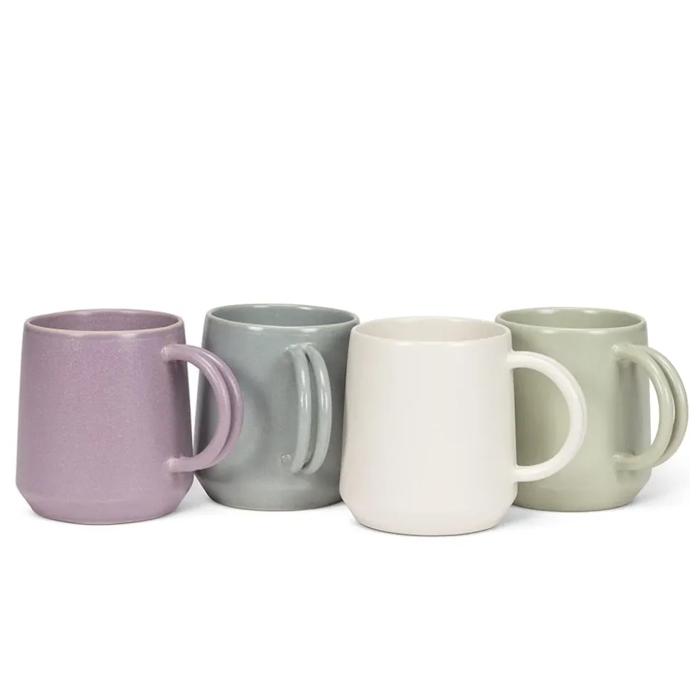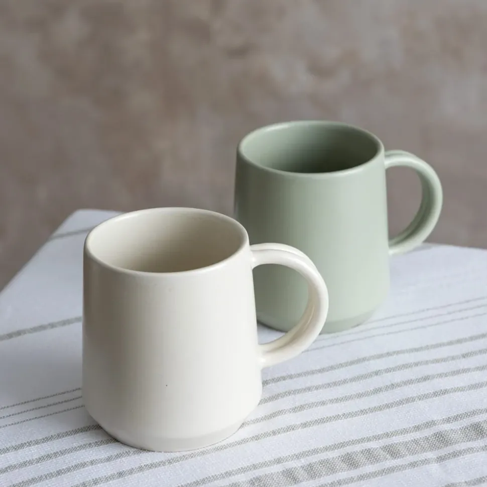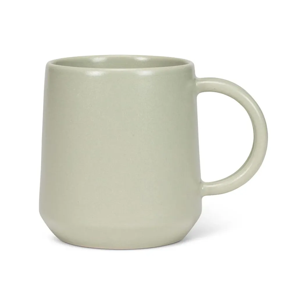 A distinctive addition to any drinkware collection is this sage green double-handled mug. With its two strong handles, this 12 oz cup is comfortable to hold. Enjoy your favorite hot beverages, such as tea, coffee, or hot chocolate, in this sturdy stoneware cup. Your morning routine or midday relaxation will be much more appreciated with an aesthetic mug. Also available in white.