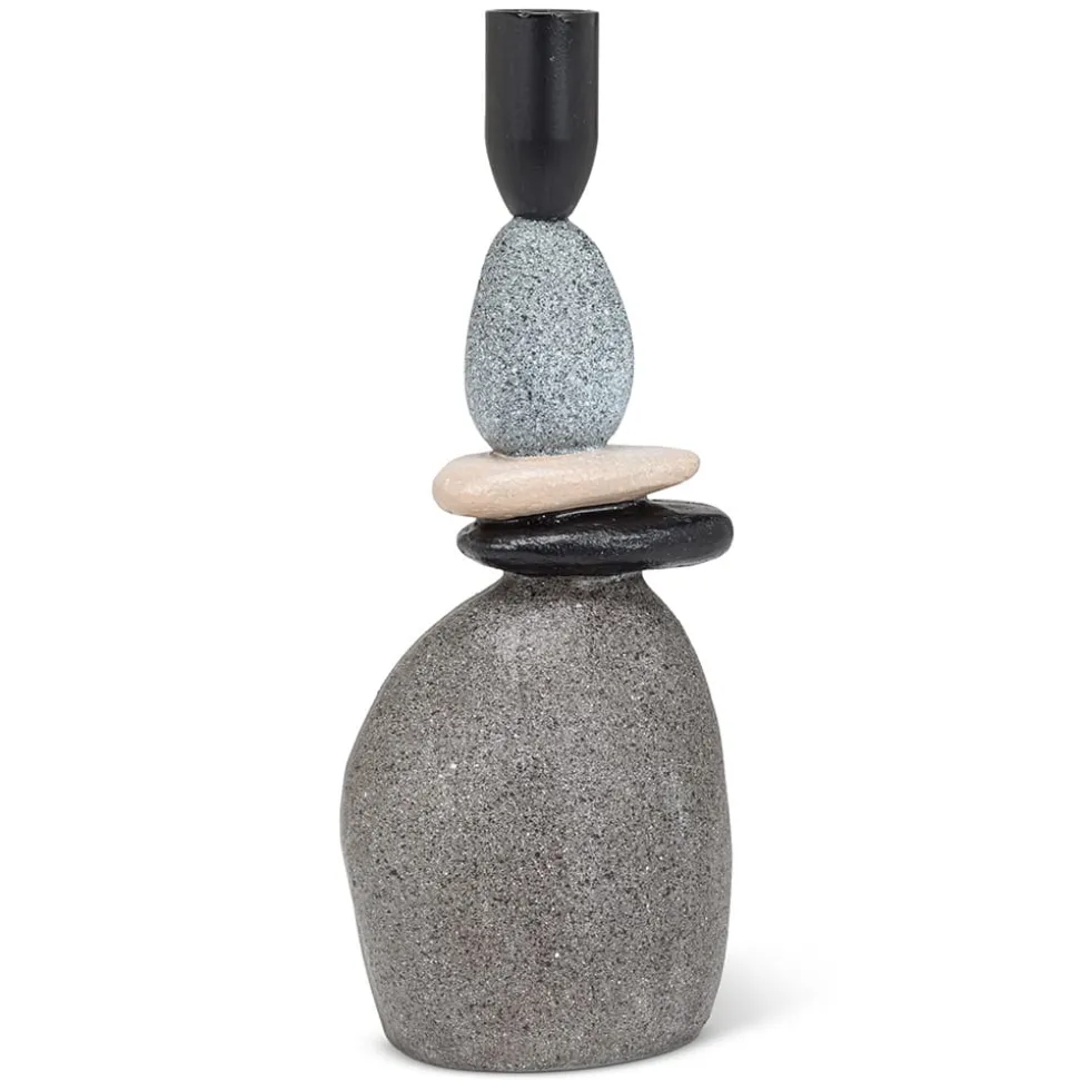 Stacked stone taper candle holder, 9″. This unique stack of coloured pebbles makes a charming taper holder. Made from resin and measuring 9″ high, it’s perfect for adding a contemporary yet organic touch to your home decor. Other size also available.