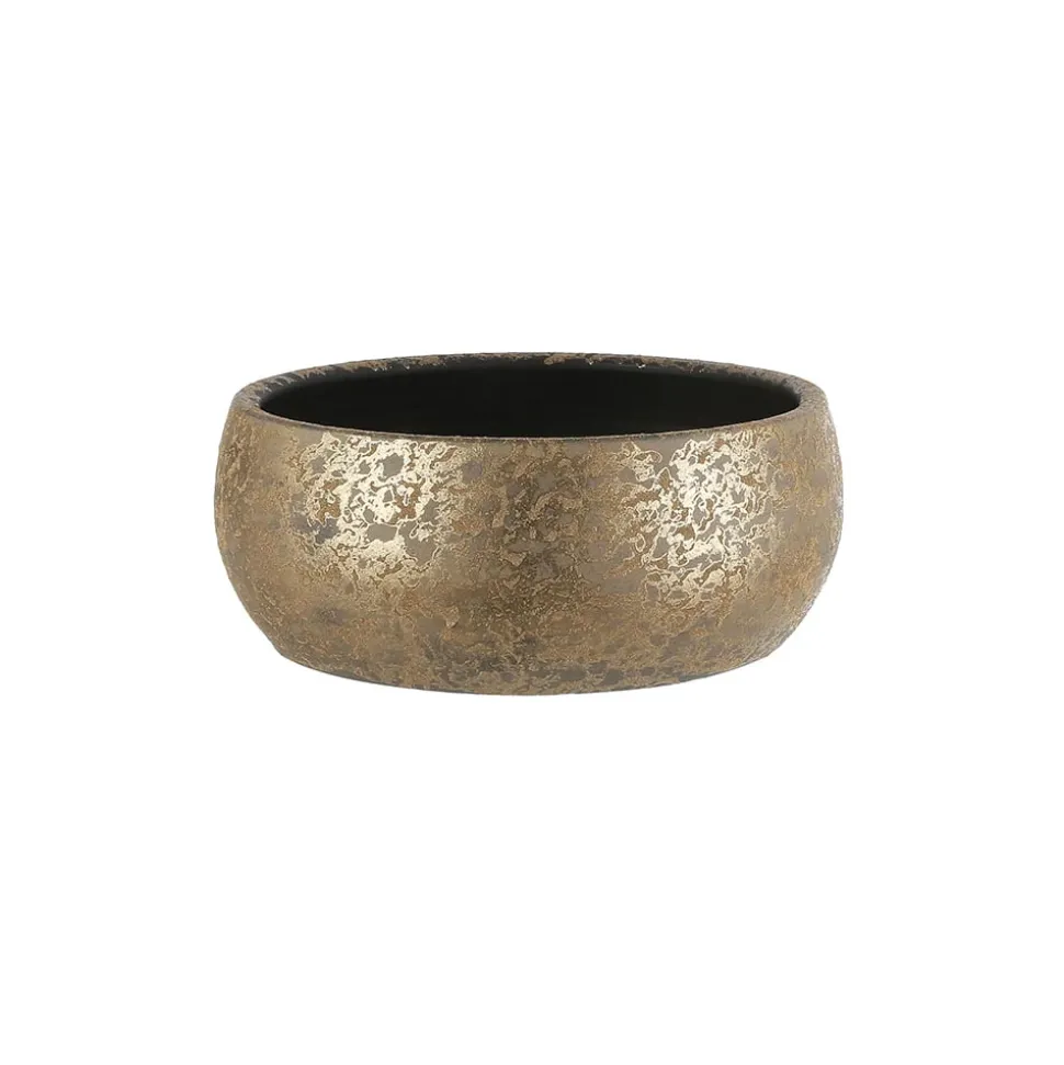 The golden accents on this terracotta bowl are sure to catch the eye! To complete the look, add moss or green plants.