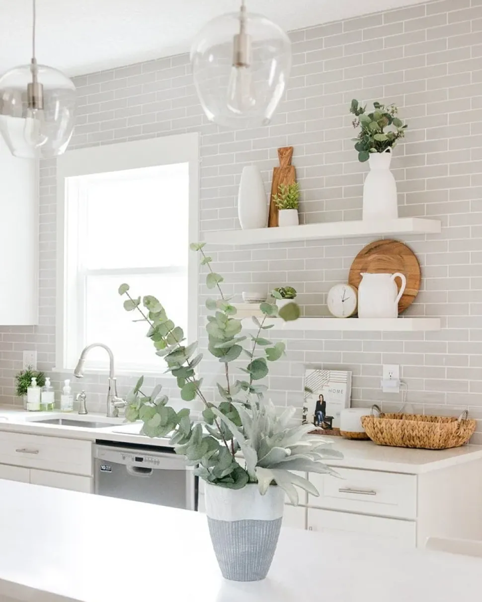 Vase en céramique grise pâle dont le fini du haut rappelle le marbre.