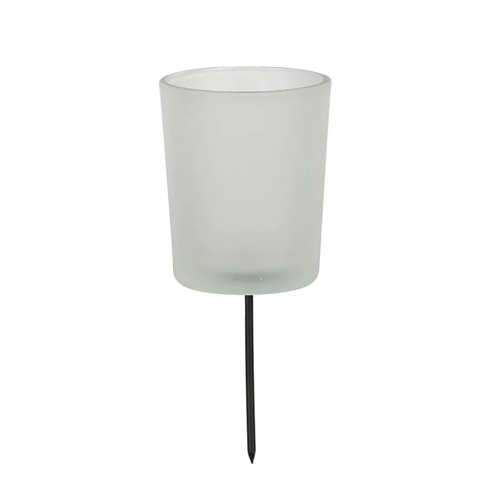 White candle holder pick, 6″. Stick the metal stem into a floral arrangement or Christmas centerpiece for instant magic! Simply place a battery-operated votive inside the candle holder to enjoy the glow it makes.